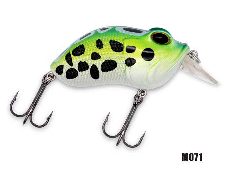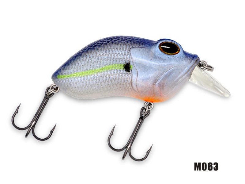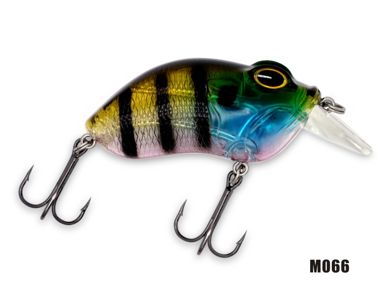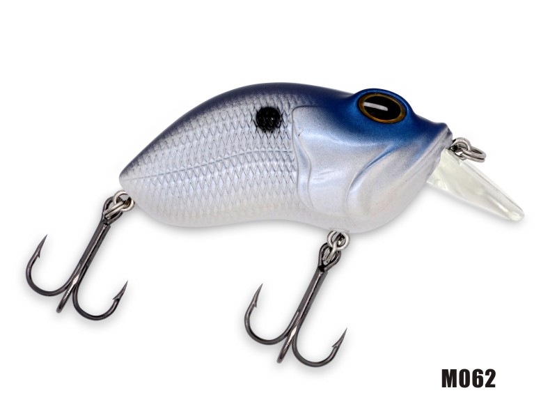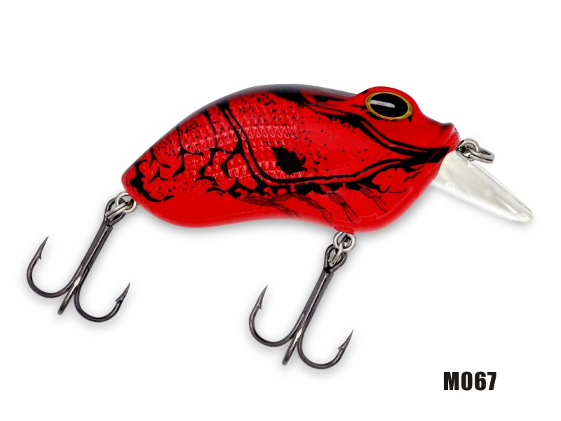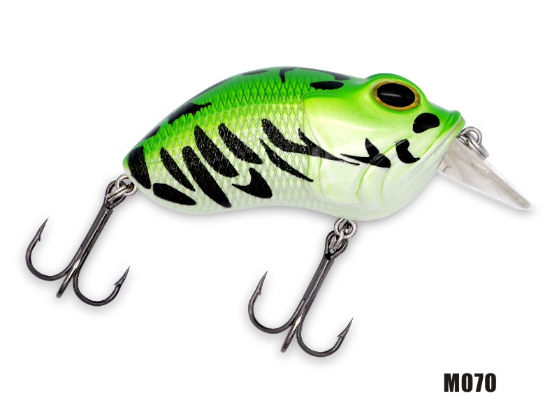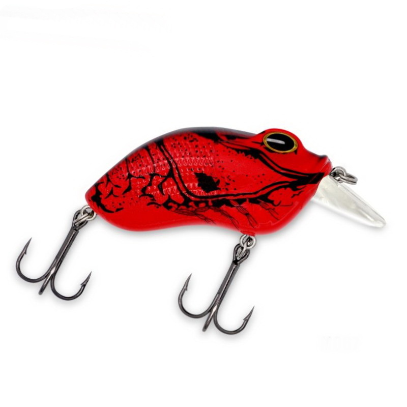 Rolling Crank bait has a sector bill, inside rattlers arenot fixed, special water flow make rattlers move left and right when retrieving,lead the bait rolling crank. Big and raised oval eyes create wave and improvefish attack.
