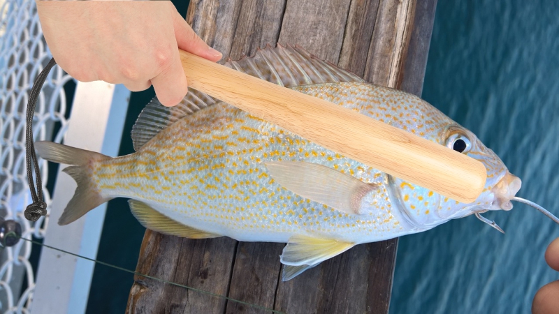 Floating wood material, anti-rust, big handle with safety rope, easy use for freshwater and saltwater fishing.