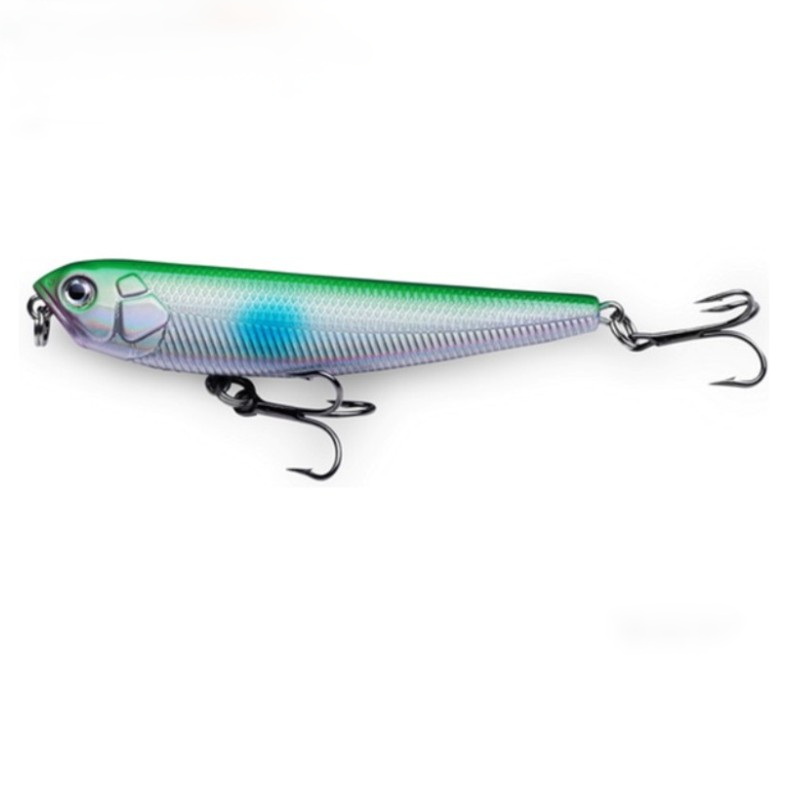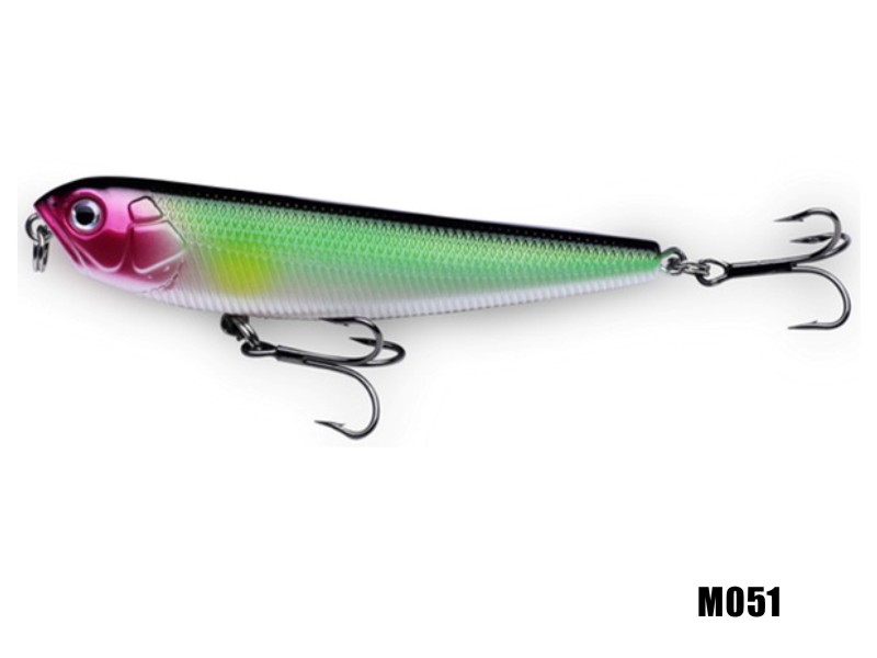 Recertop Pencil Lure is combination of pencil and popper,its small open mouth also create water spray. When floating the body slant toone side, looks like a dying fish, no fish can resist to attack.